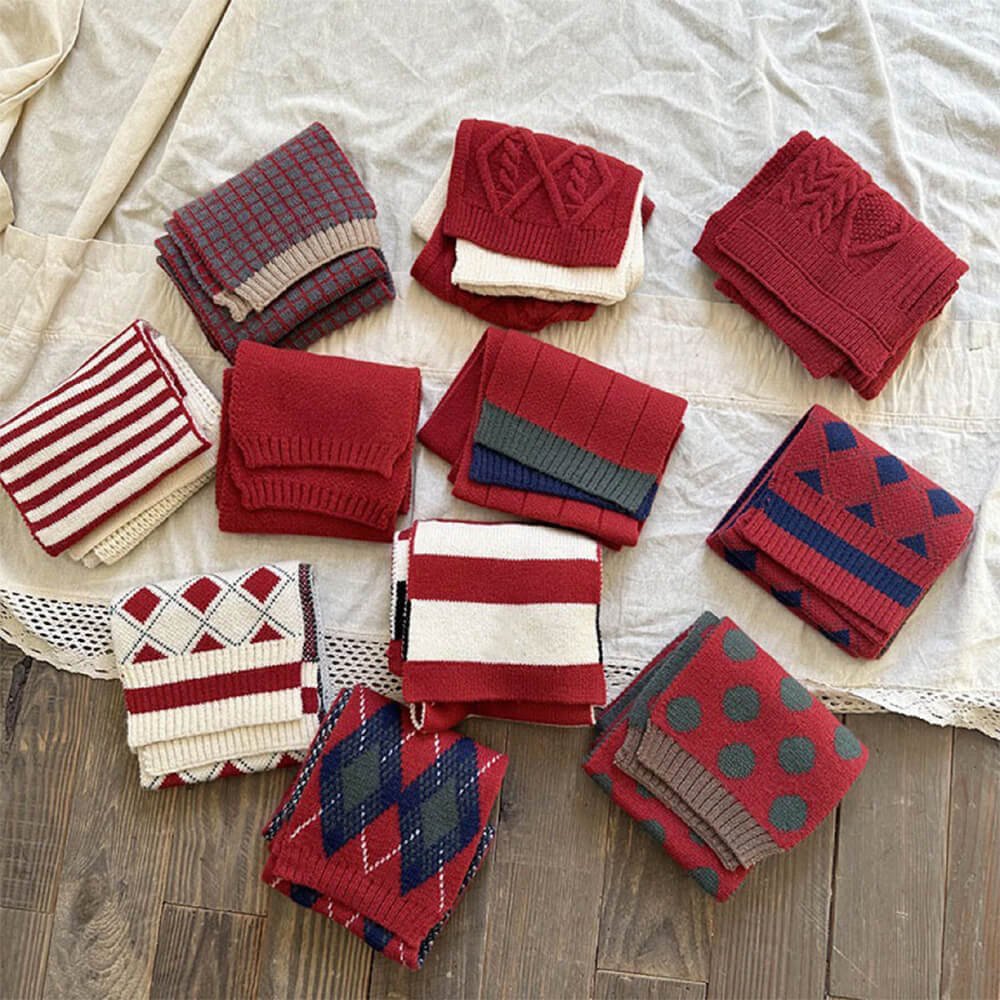 Cozy Red Argyle Knit Acrylic Adjustable Fit Dog Scarf