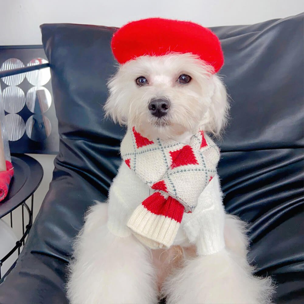 Be the first to review “Cozy Red Argyle Knit Acrylic Adjustable Fit Dog Scarf”